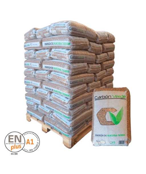 Pellet Carbón Verde presentado en palet de 88 sacos.